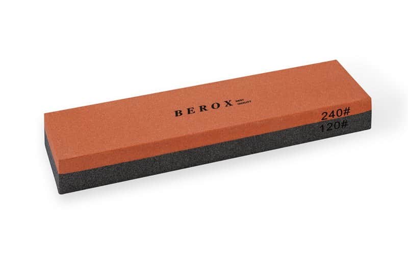 אבן השחזה דו צדדית. צד להשחזה גסה עם גרעין 120 וצד להשחזה עדינה עם גרעין 240 .